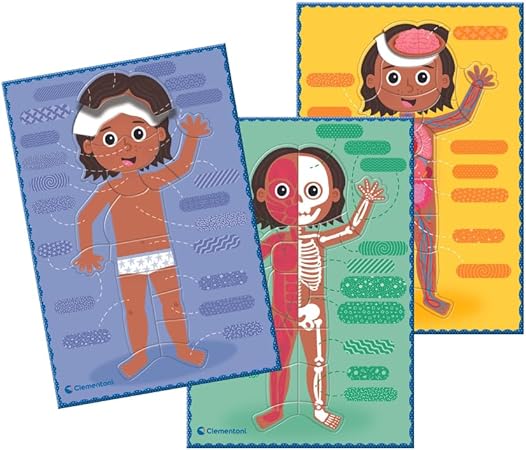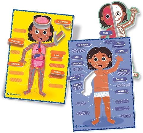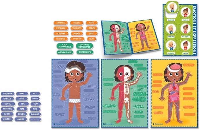 • Human Body Discovery: The game allows children to discover different parts of the body, including the skeleton, muscles and organs. By superimposing the cardboard elements on the board, children can replenish the human body seen from the outside, as well as its internal structures.