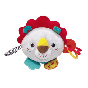 • Built-in rattle, rubber teether, plastic rings and crinckle paper details;