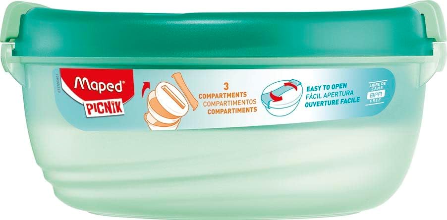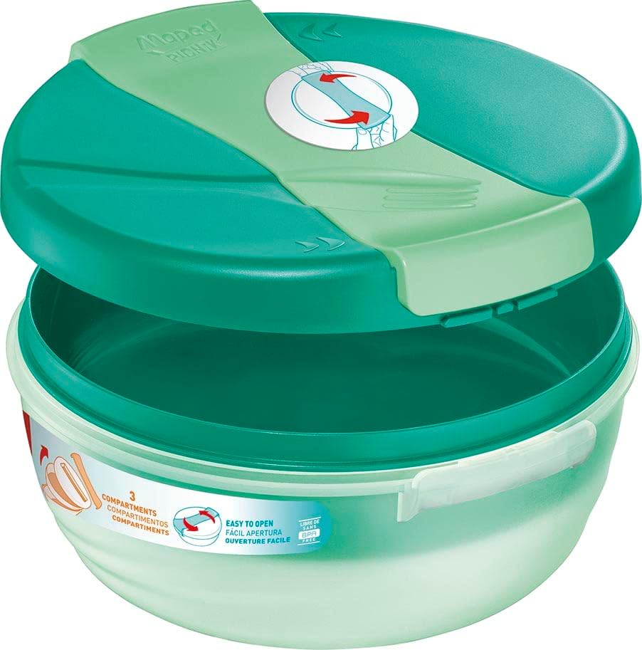 Maped Picnik Origins Lunch Bowl 1.4 L – Compartments + Cutlery Compartment Integrated in Lid – Easy to Open – Dishwasher Safe – Microwave Safe