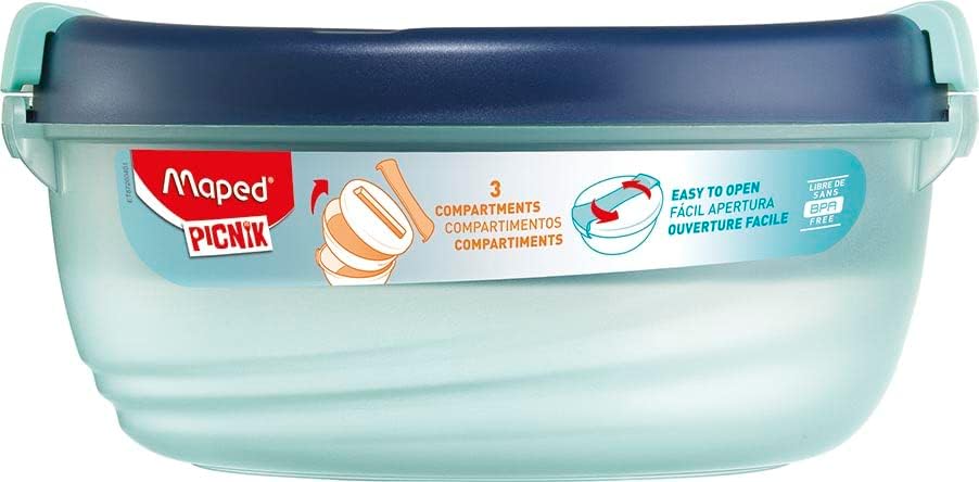Maped Picnik Origins Lunch Bowl 1.4 L – Compartments + Cutlery Compartment Integrated in Lid – Easy to Open – Dishwasher Safe – Microwave Safe