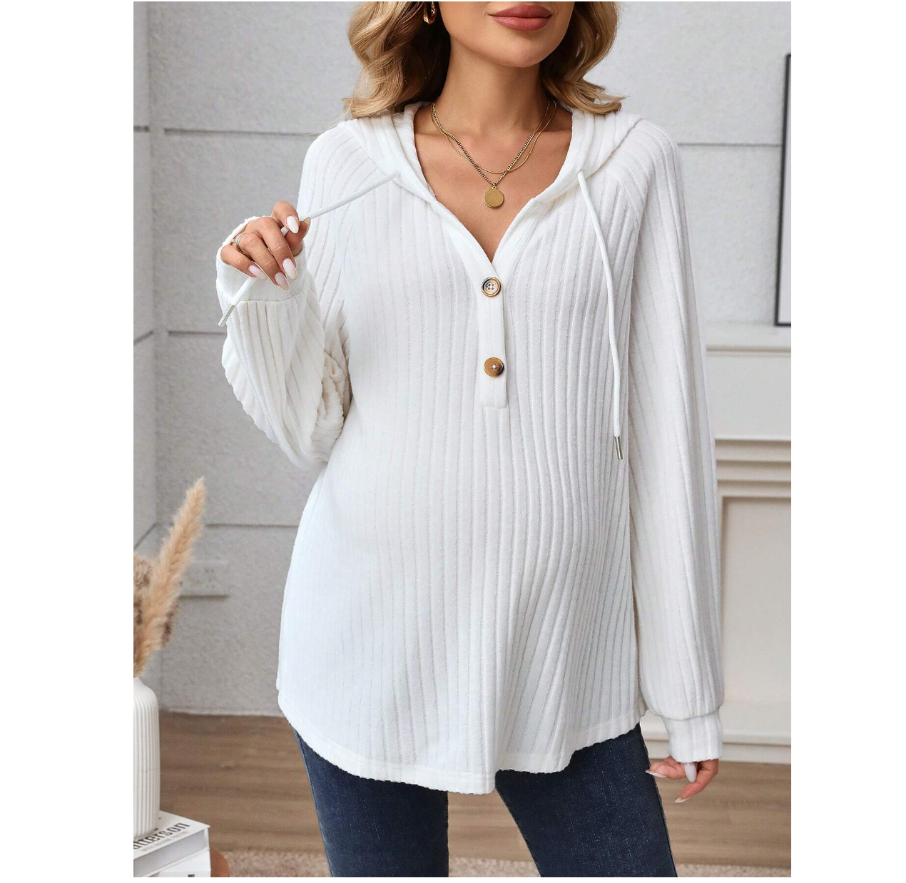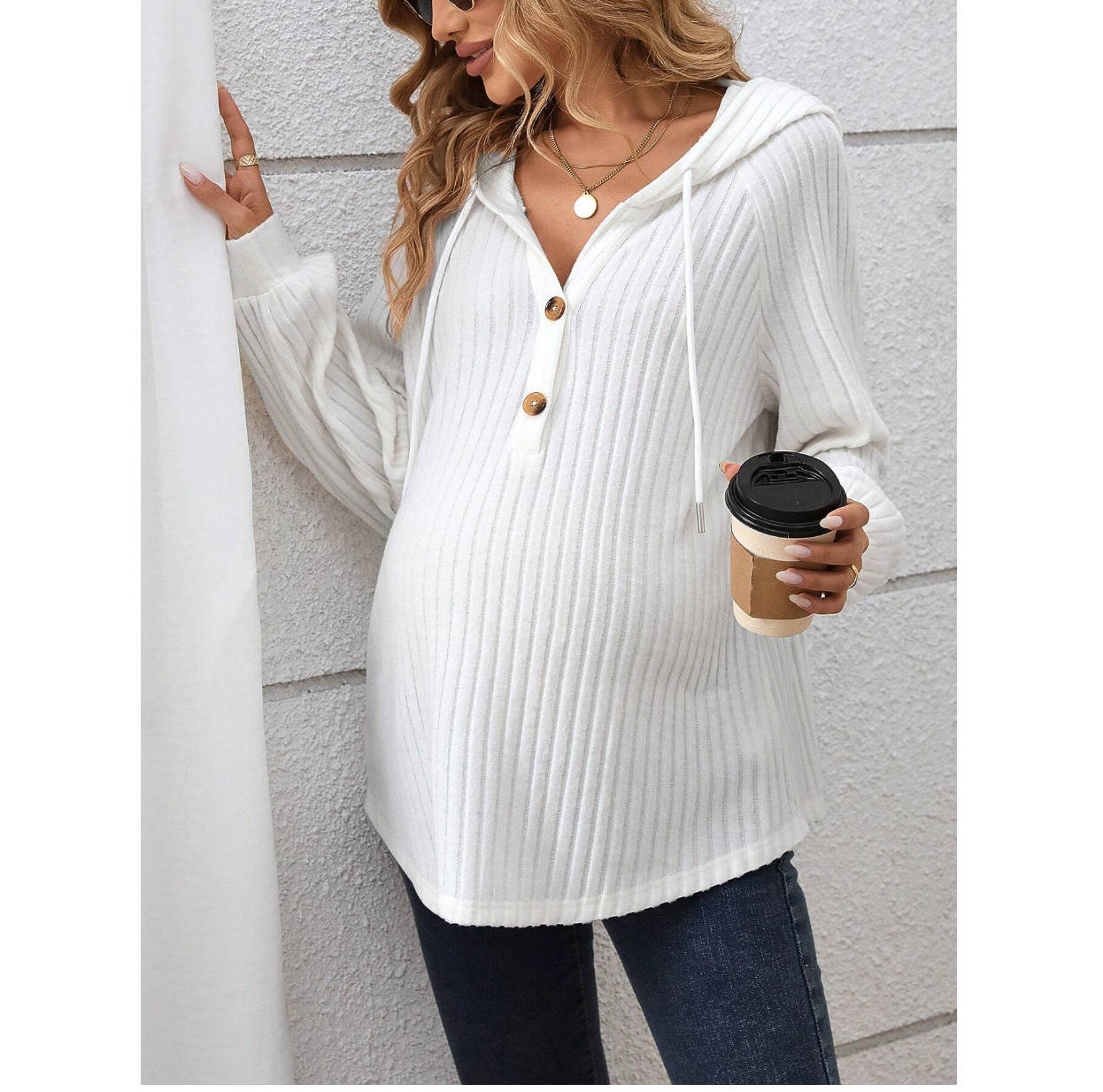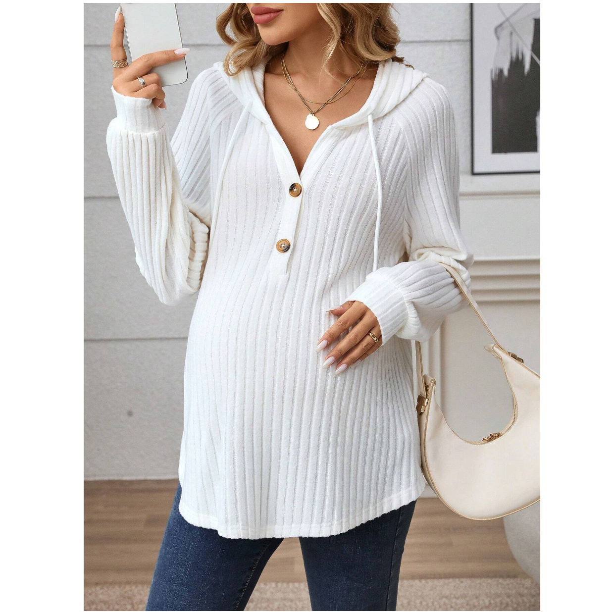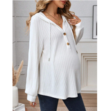 Pregnant Women Solid Color Raglan Long Sleeve Hooded Loose Casual Sweatshirt, Spring & Autumn