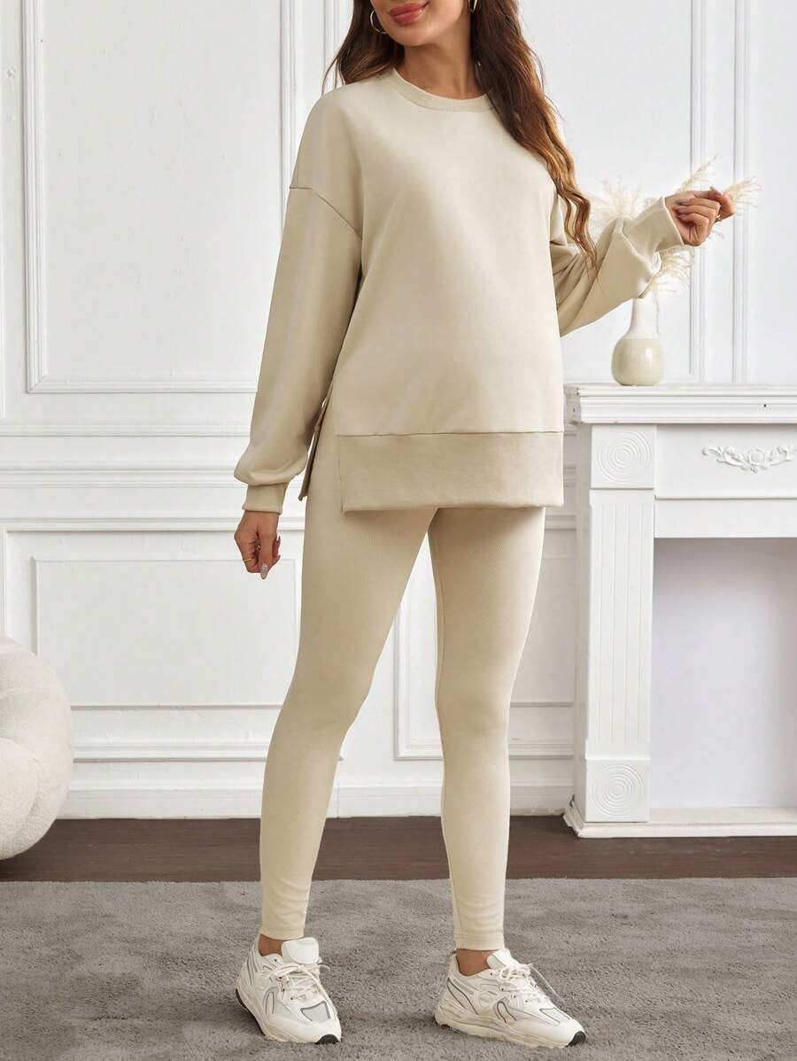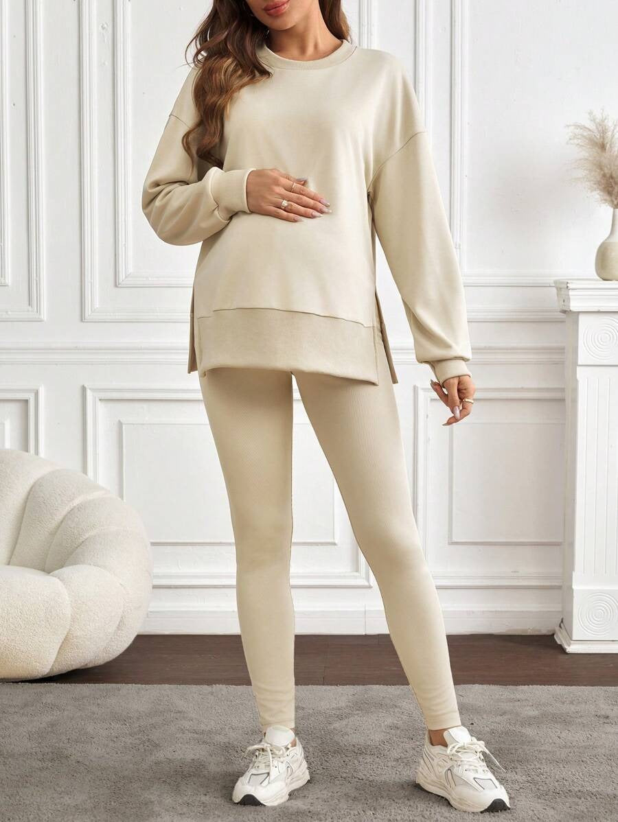 2pcs/Set Pregnant Women Solid Color Top And Pants, Casual And Stylish For Daily Wear