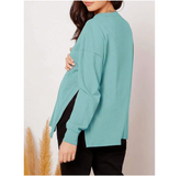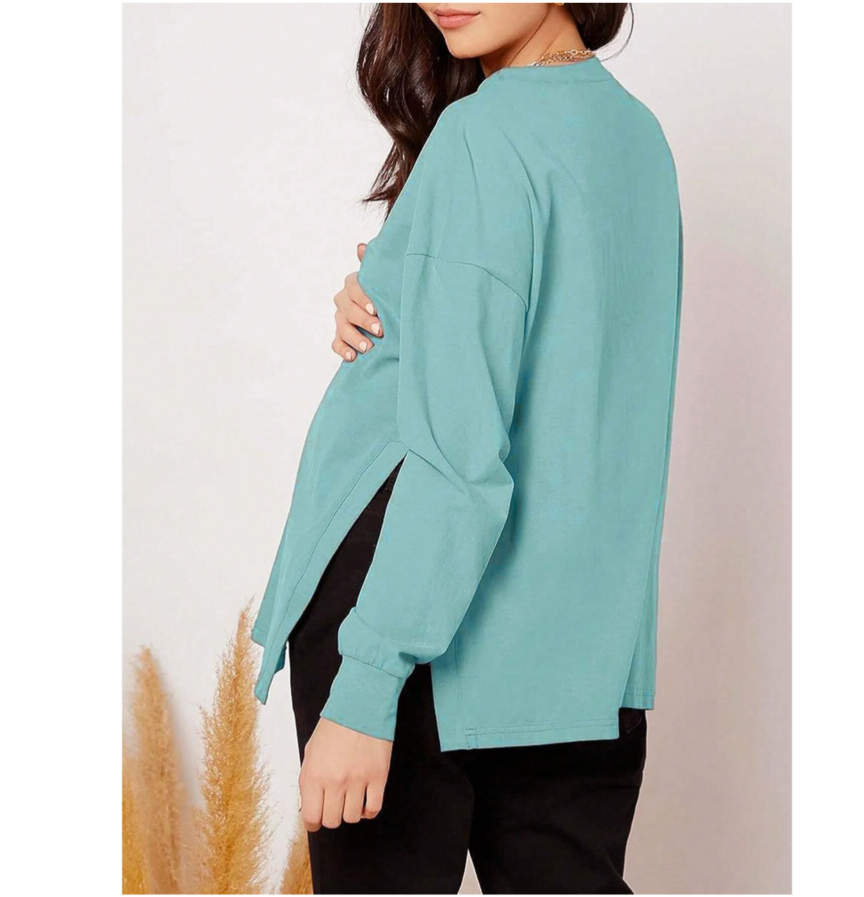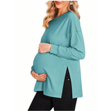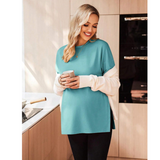 Maternity Drop Shoulder Slit Hem Tee/BLUE