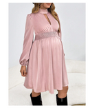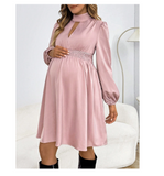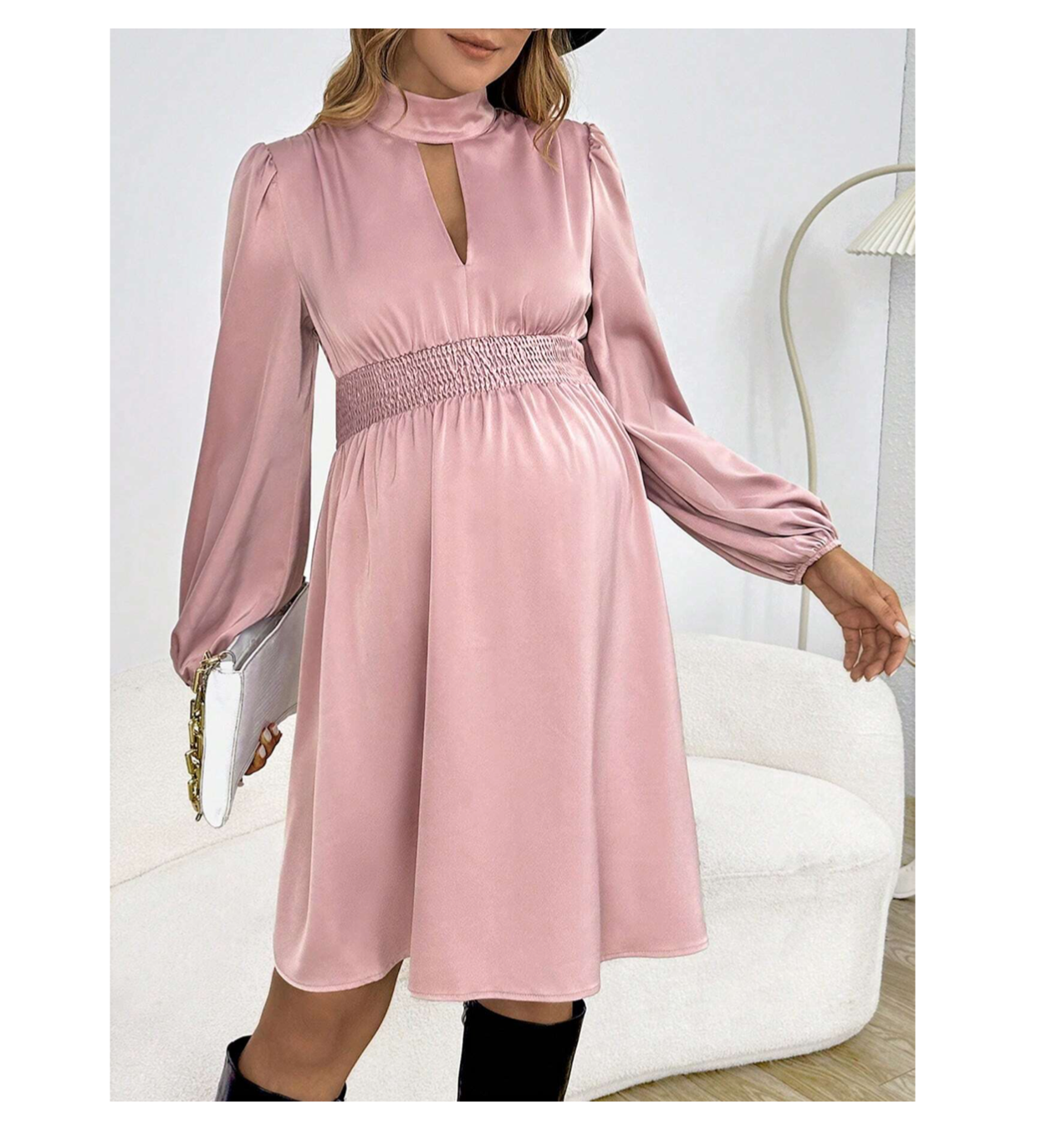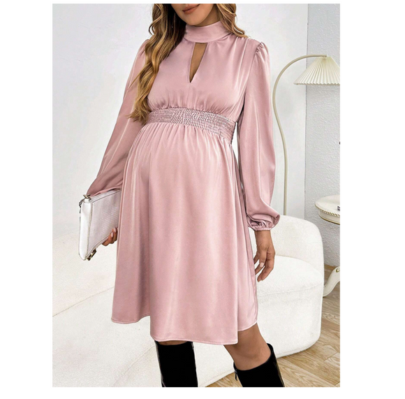 Maternity Keyhole Neckline Lantern Sleeve Dress