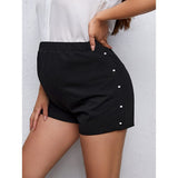 Maternity Pearls Beaded Adjustable Elastic Waist Biker Shorts