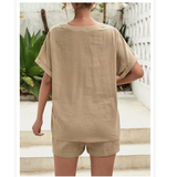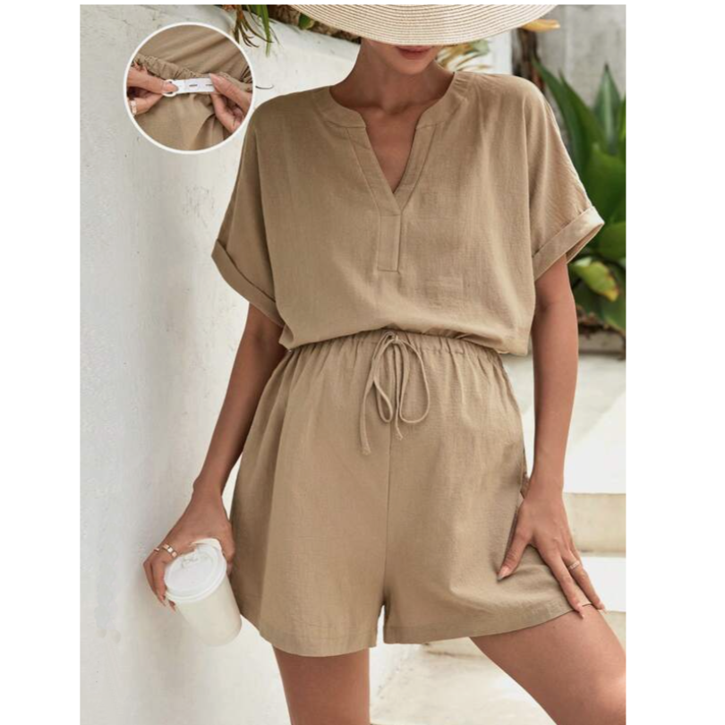 Maternity Notched Neck Batwing Sleeve Top & Shorts Set