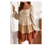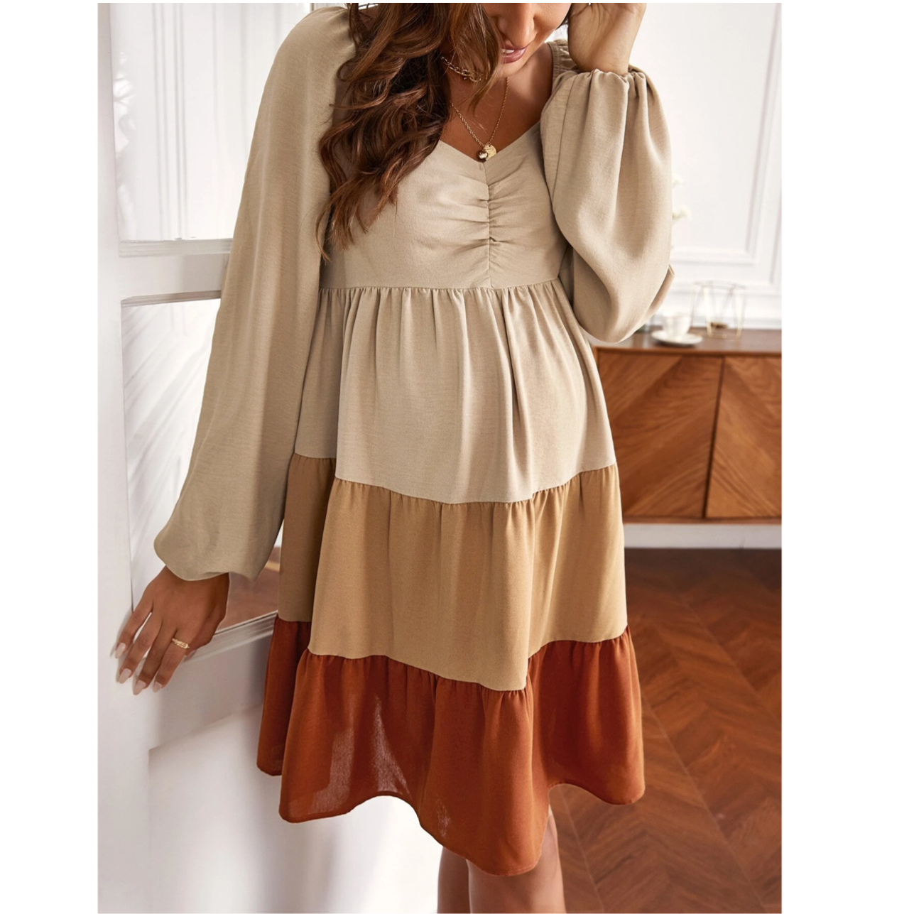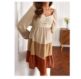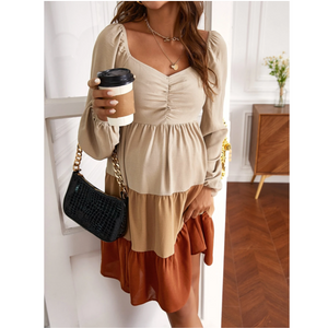Maternity Sweetheart Neck Ruched Front Colorblock Dress