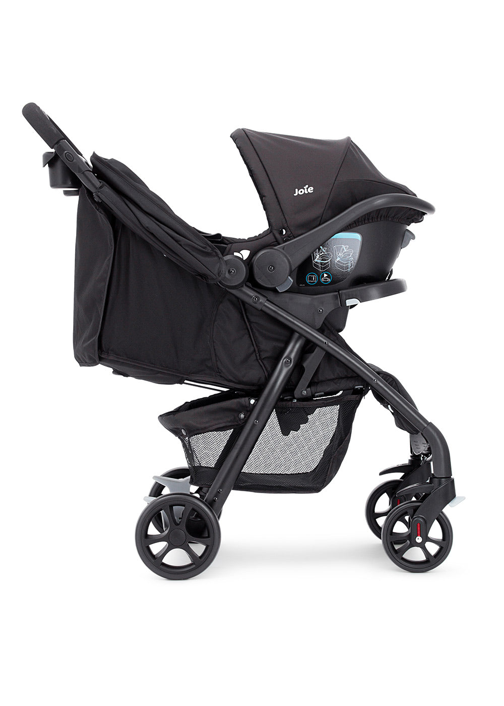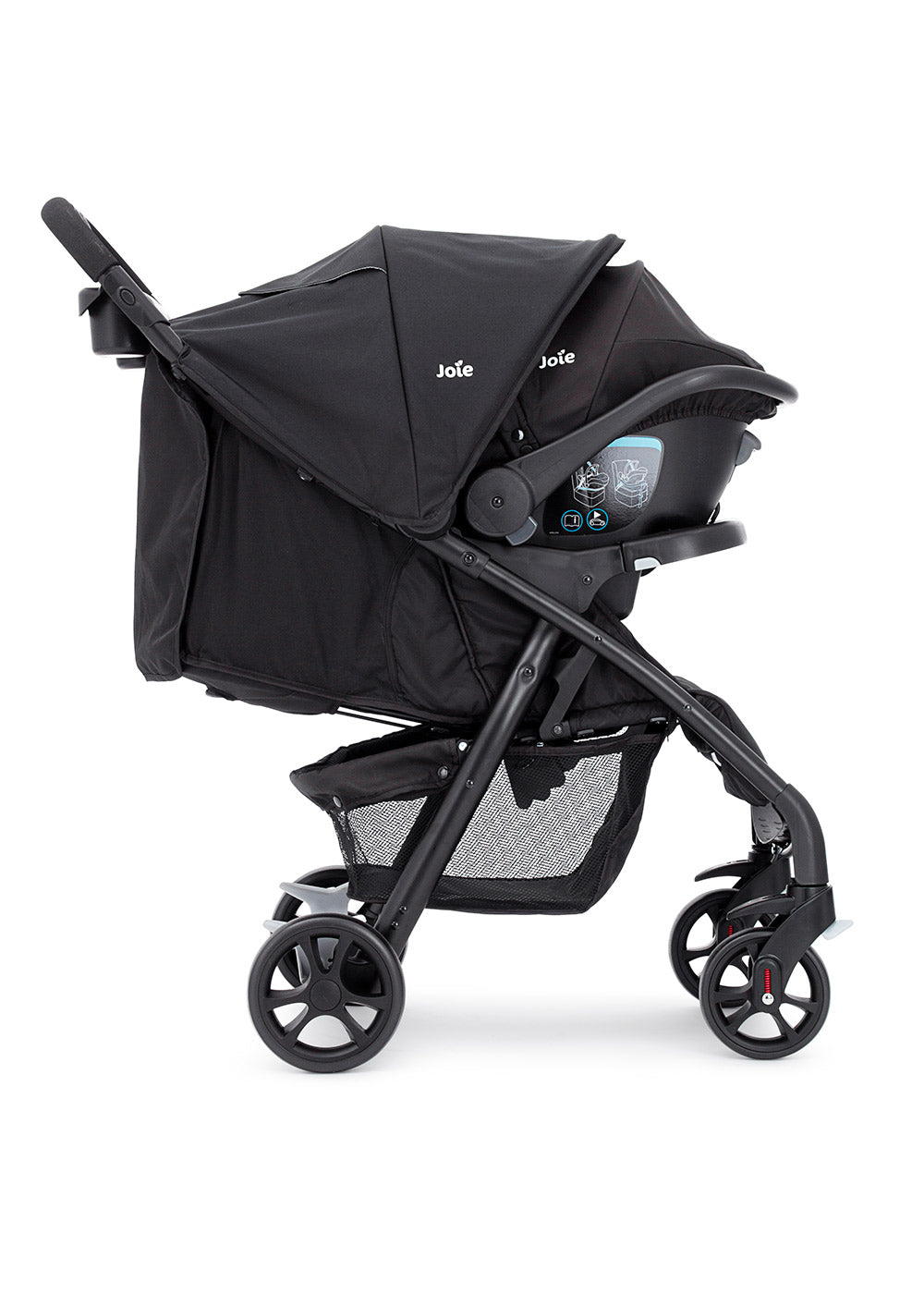 A deluxe roomy rider paired with a featherweight infant retreat. This sleek and sporty, yet safe and cosy pair make travelling a cinch.