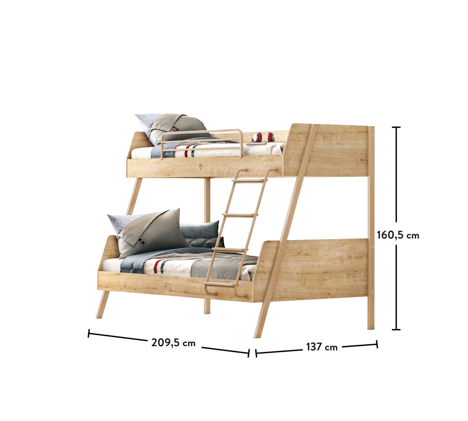 Wide Bunk Bed Oak brings a different interpretation to young rooms with its dynamic lines that prioritize naturalness. While the ladder that can be mounted on the right or left side provides ease of use, the 120x200 lower bed offers a large and spacious sleeping area.