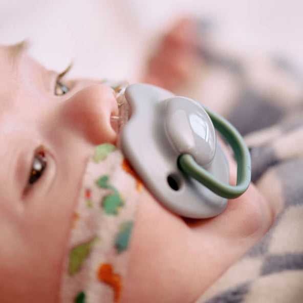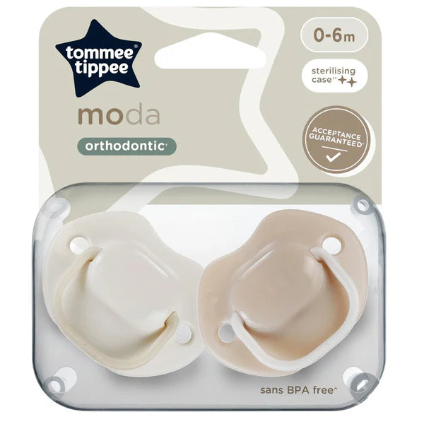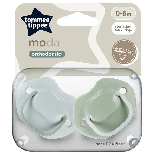 Stand out from the crowd with our fashion forward moda collection of orthodontic pacifiers, which contains designs for those who think life is one long runway. Baby-approved teat All our pacifiers have the same baby-approved baglet, so you can easily switch between different shield styles within the collection without causing your baby any confusion. Supports natural oral development the symmetrical, orthodontic-shaped baglet on our pacifiers has been designed to improve balance, making it easier for babies to hold in their mouths, whilst supporting natural oral development. Close to a bottle-shaped nipple The teat-like shape on our Moda pacifier is more like a bottle nipple for a more familiar feeling for your baby.