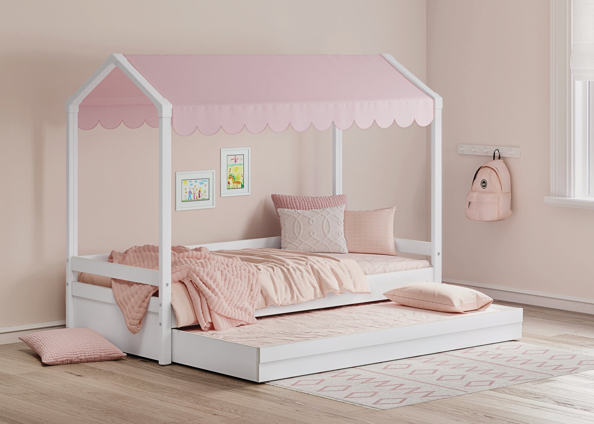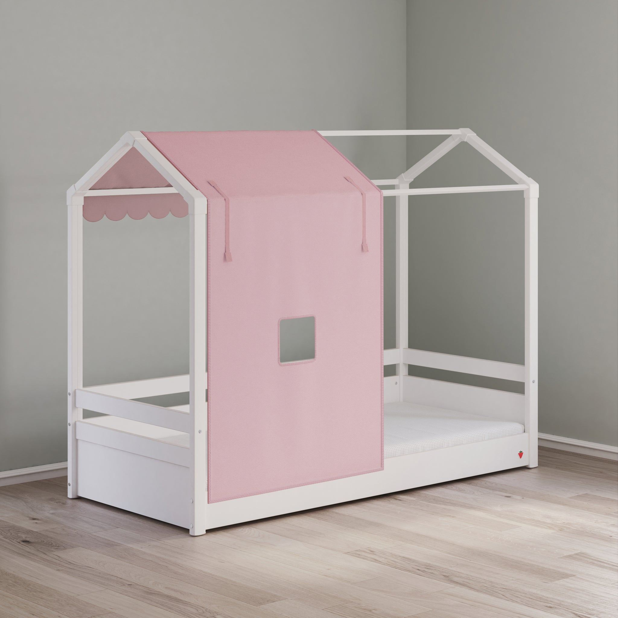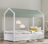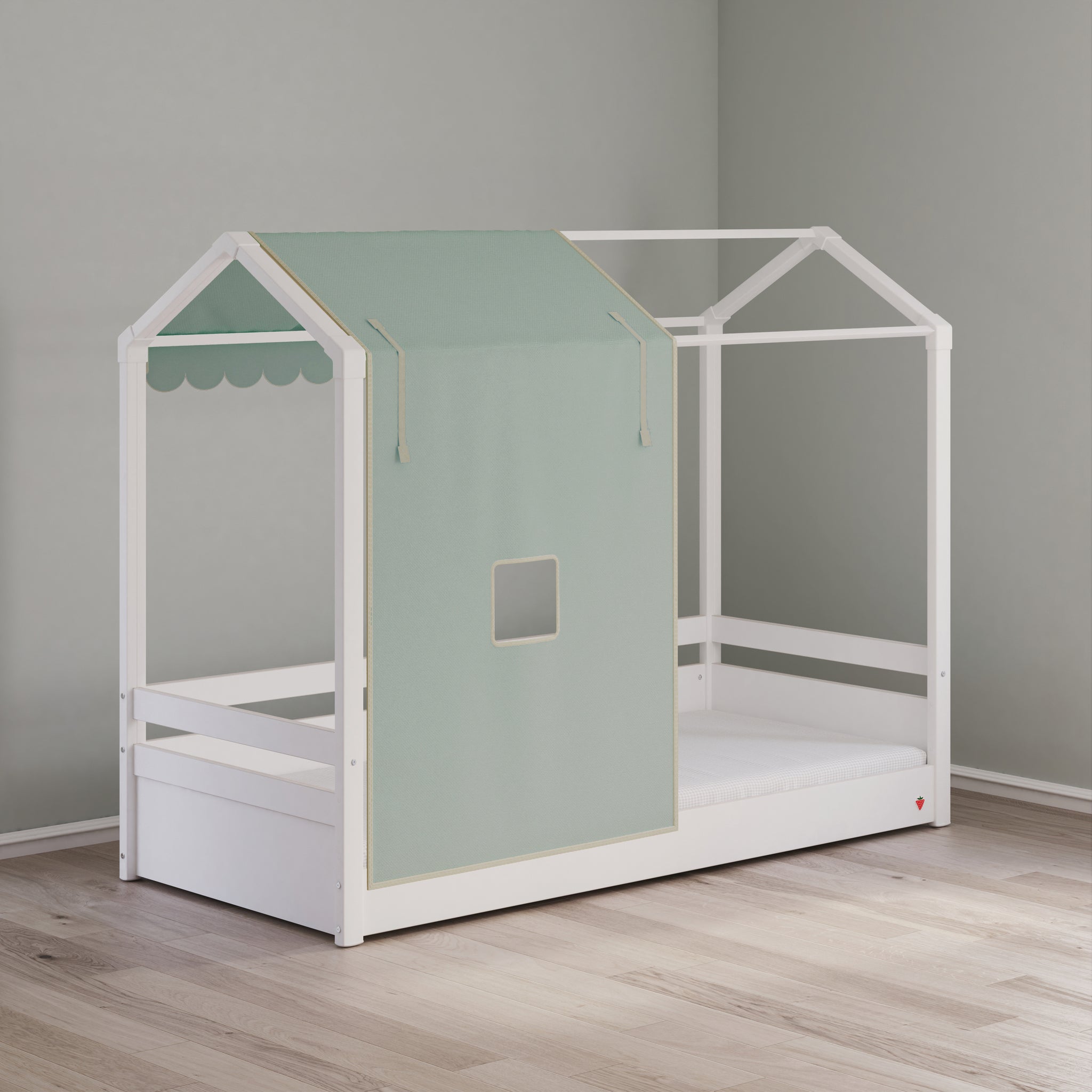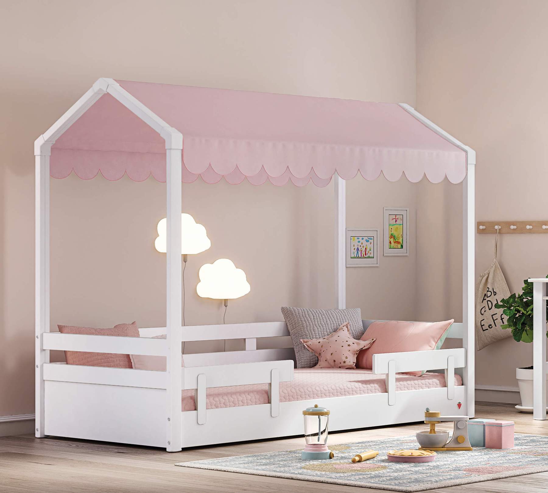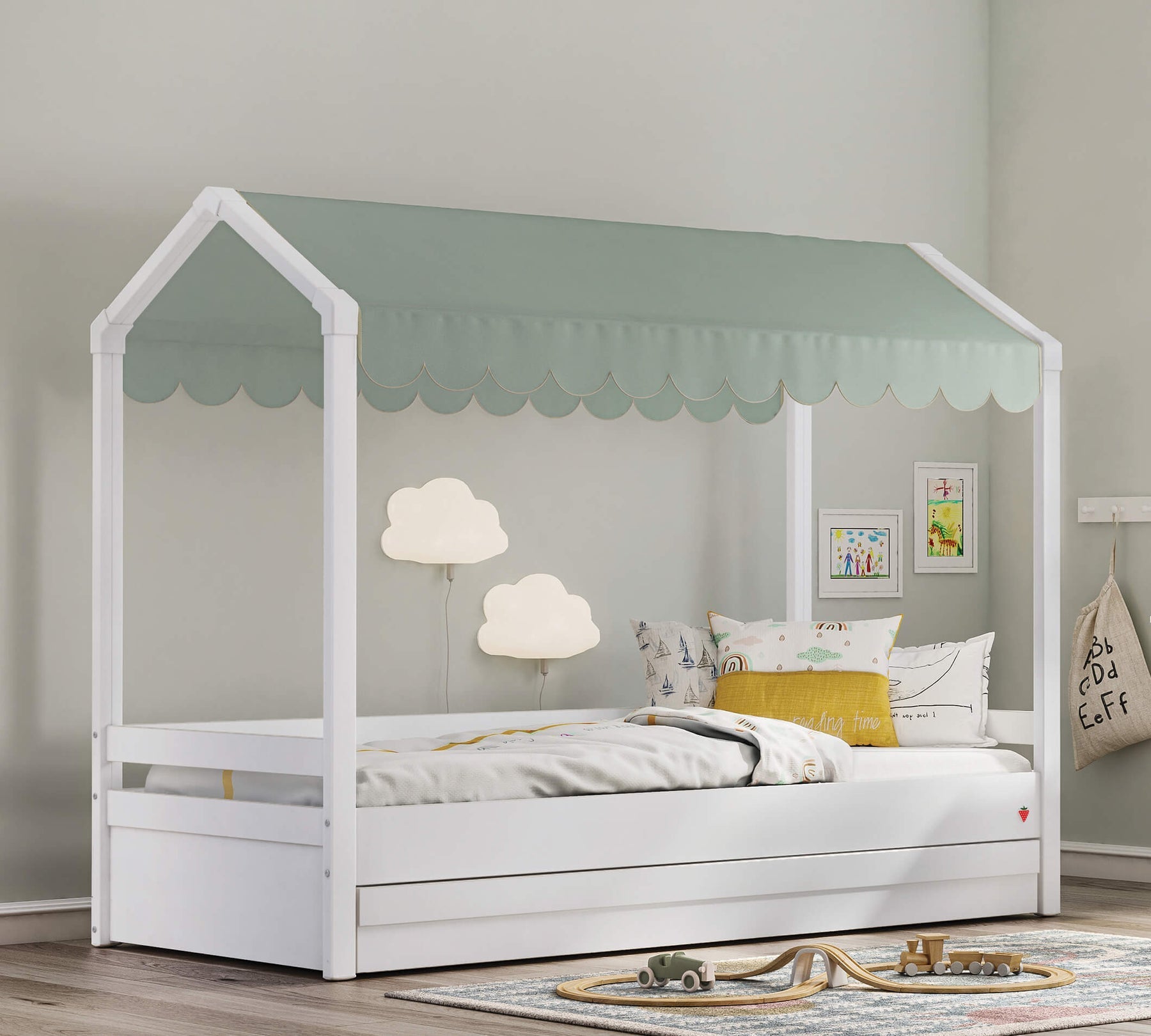 Montes White Flat Roof Bedstead offers children much more than an ordinary bed with its green, cream and pink awning. You can use the bed, which allows your children to move as they wish with its wide dimensions, from infancy to the last childhood with peace of mind. At the same time, the 2-stage height ergonomics of the Montes White Flat Roof Bedstead model provides easy access for children, while offering a carrying capacity of 80 kg. So you can show them what they can do..
