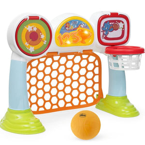 3 game modes: penalty, throw into the basket, hit the target; football net, basketball net and target; the toy recognizes when the child hits a target, basket or goal by producing the sounds of applause; 14 melodies and lighting make the game even more fun; Includes a soft plastic ball for safe games; Recommended for children over 2 years old.