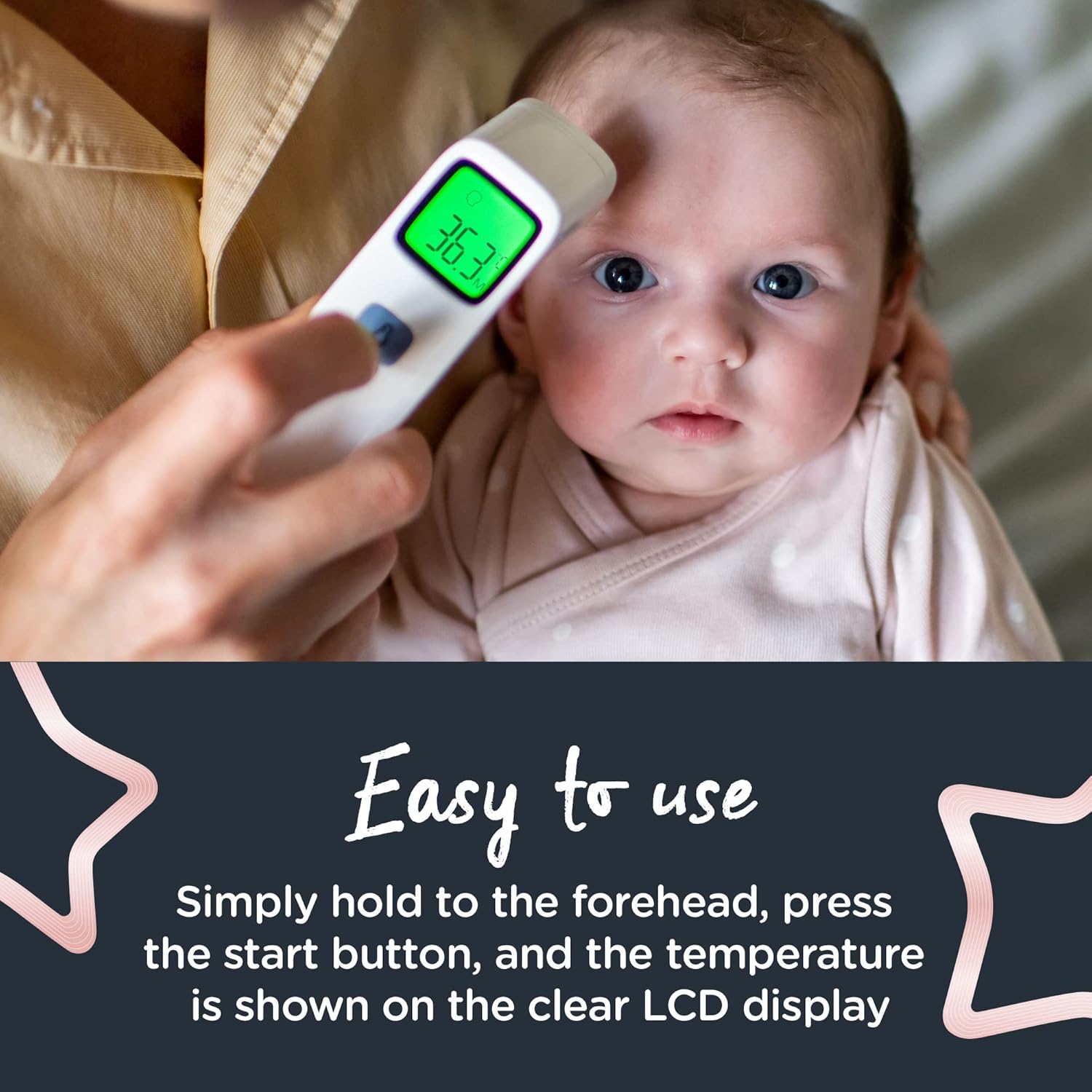 • Easy to use: Suitable for use from birth, hold the scanner 1-3cm away from the centre of the forehead, press the start button and the temperature will be shown on the easy to read LCD display