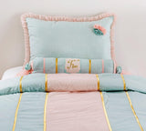 Bed Cover (Comforter), Pillow case 50x70 cm, Mint green cylinder pillow.