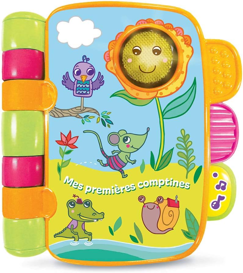• The Enchanted Little Book – My First Rhymes by Vtech is an interactive book that allows babies to stimulate their awakening.
