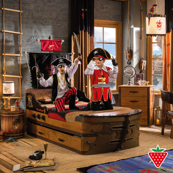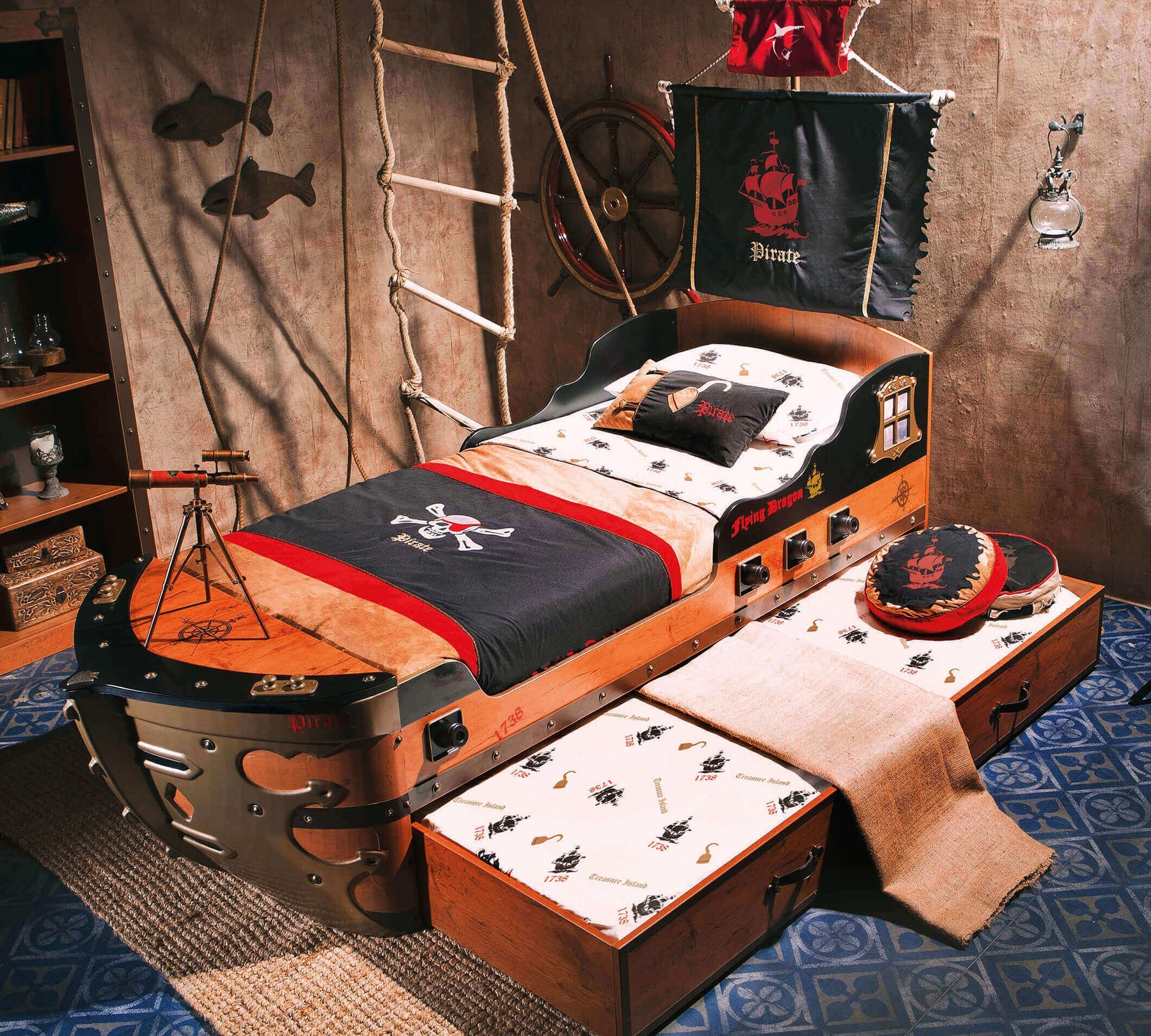 The bed, which turns into a full pirate ship with the pennant attached to the heading head, gives diversity to use by putting it in the space at the bottom.