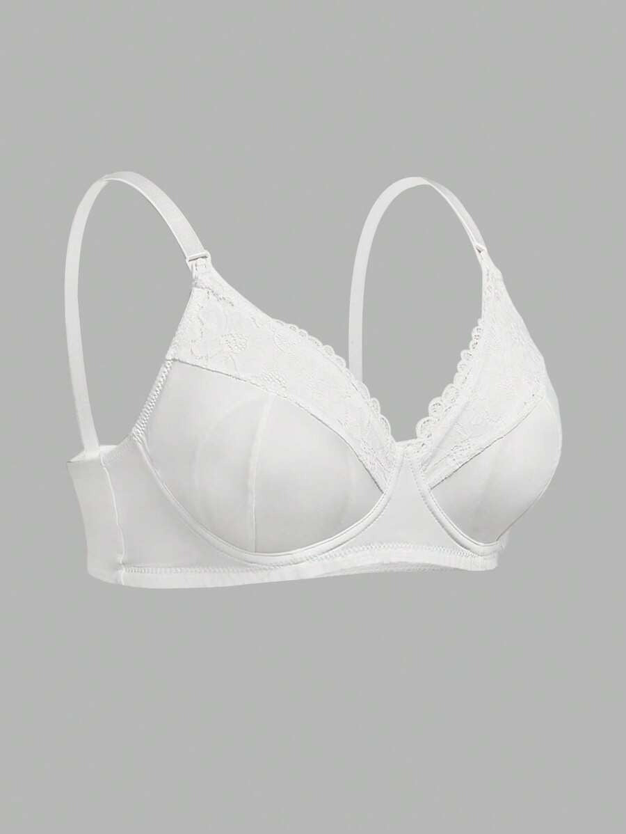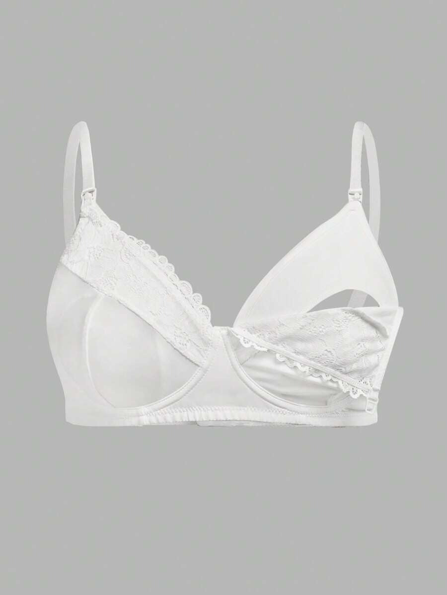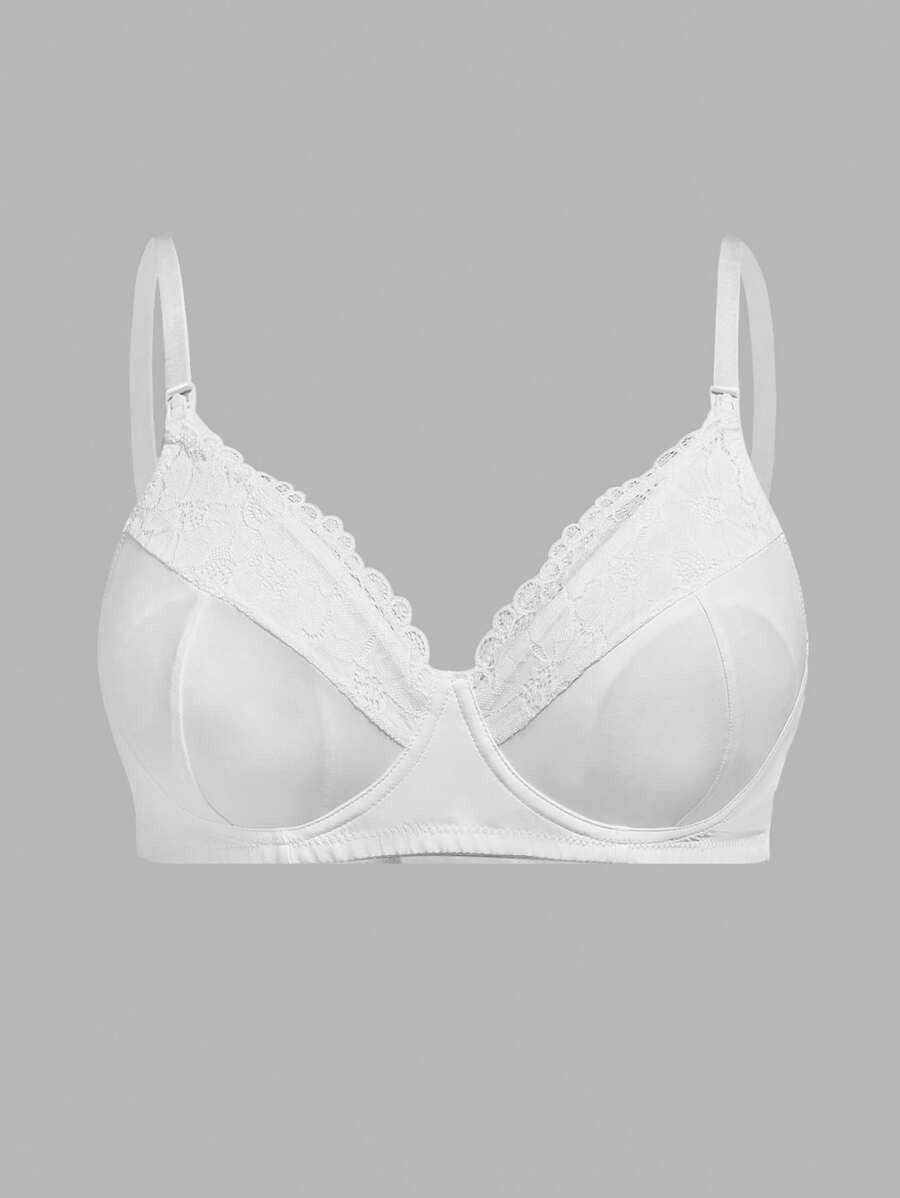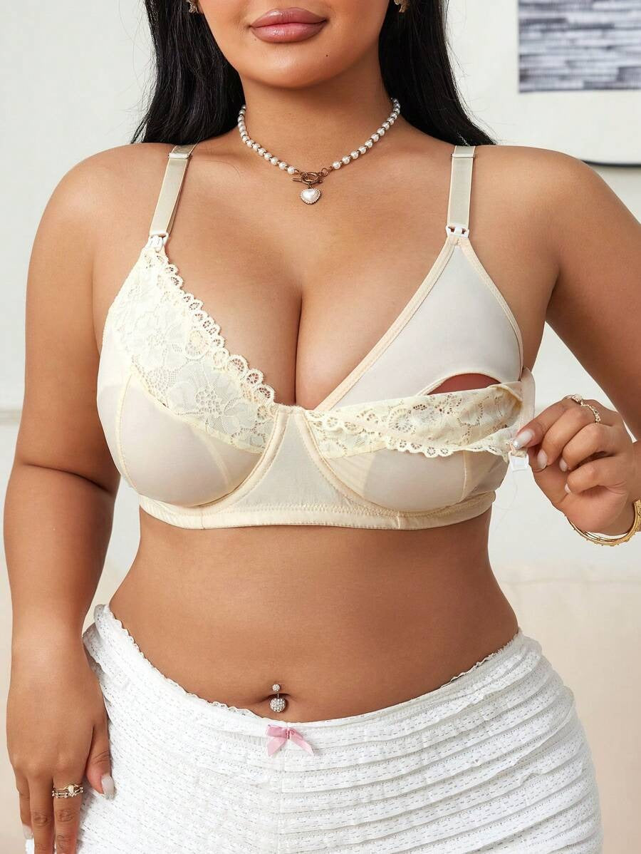 Plus Size Maternity Nursing Bra With Lace Patchwork, Underwire, Easy Nursing Access,