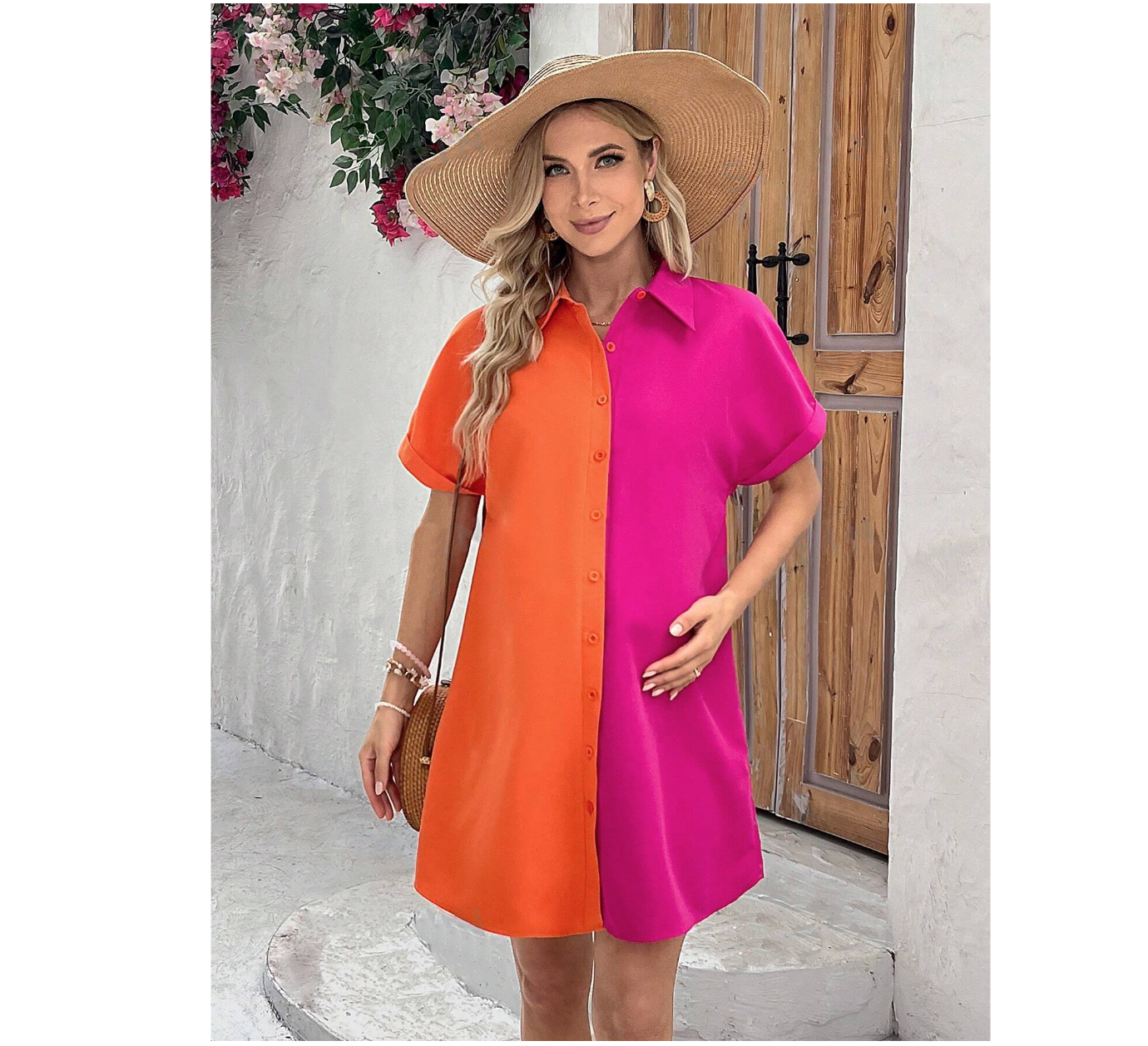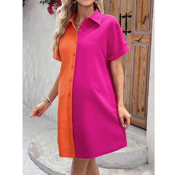 Pregnant Women Minimalist Color Block Daily Wear Buttoned Dress