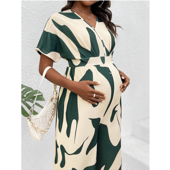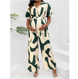 Pregnant Women's V-Neck Batwing Short Sleeve Jumpsuit