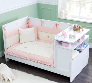 Offering a soft and spacious use thanks to its cotton structure, Queen Baby Sleeping Set provides a comfortable sleep experience for children. Designed with gold gilded embroidery, the product brings an aesthetic and stylish appearance. While creating a safety precaution for your babies with the side protection inside, it also prepares an environment for them to sleep peacefully with its quality pillowcase and quilt. You can use the product with Masalı Growing Baby Bedstead of 70x140 cm.
