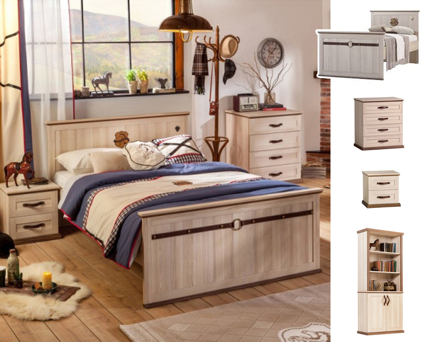 Bed 120*200 cm + Dresser + Nightstand + Bookcase