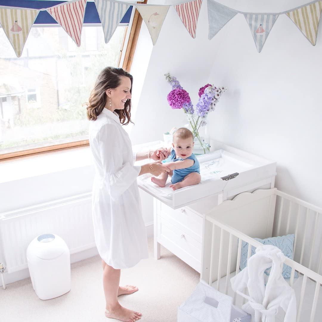 Twists and wraps each nappy to lock in odour Antibacterial film kills 99% of germs on contact and offers odour protection Holds up to 28 nappies at one time