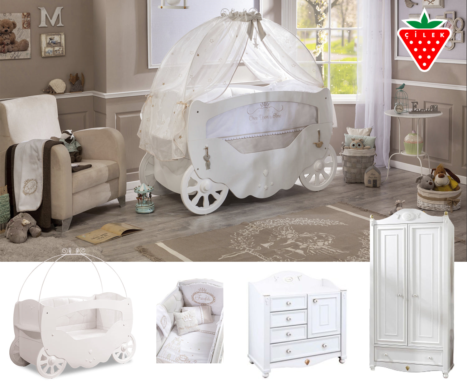 Fairy Baby Bed + Softy Dresser + 2 Doors Softy Wardrobe