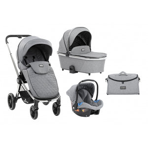 Accessories included: Footcover on the carrycot and on the seat unit, adaptors, mama bag which transforms into a changing pad.