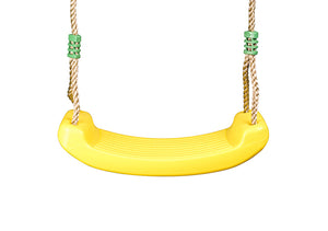 Yellow seats and height adjustable hemp-colored polypropylene ropes.