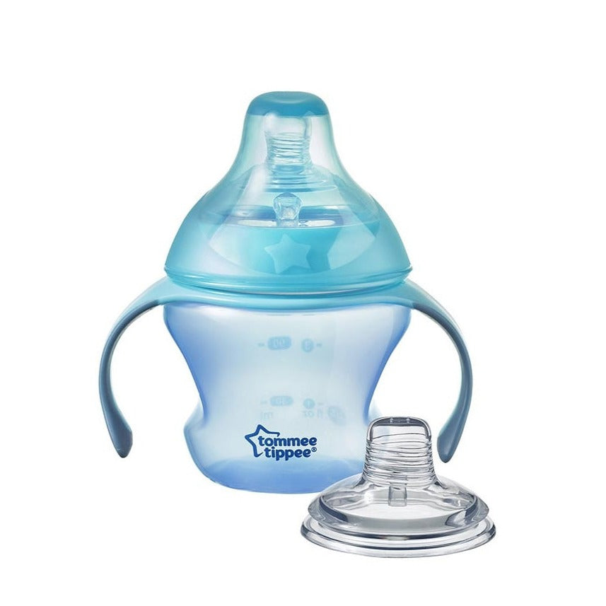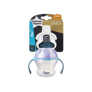 • Tommee Tippee brand transition cup, specially designed for baby’s first sips. Includes a soft nipple and spout.