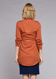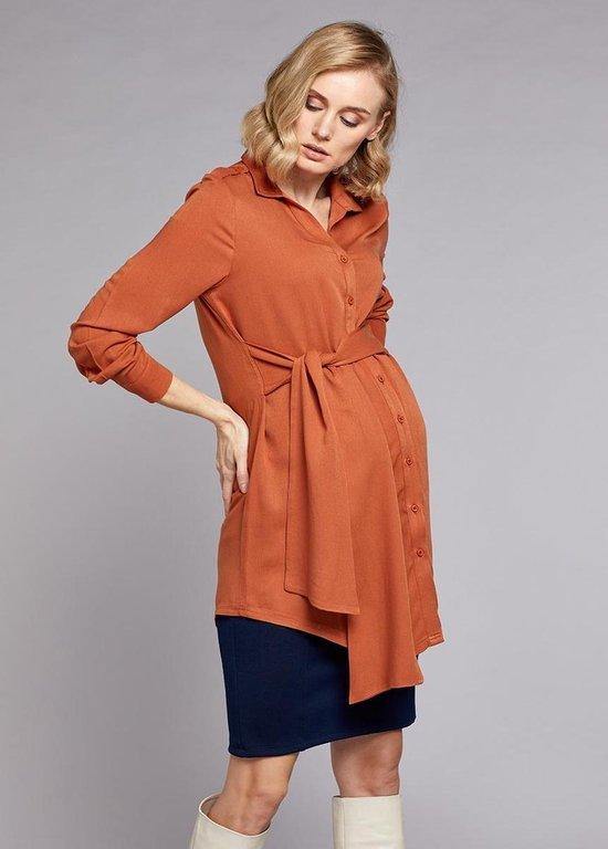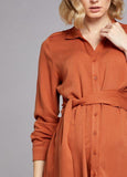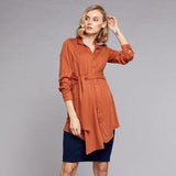 Beautiful camel colored blouse with band so that you can accentuate your waist.