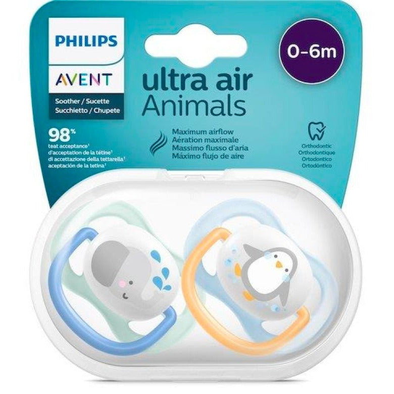 Soothe your baby with a pacifier that lets its skin breathe. The Philips Avent ultra air has extra large holes to keep skin dry. Its lightweight shield is designed for maximum air flow. Available in various colours and fashionable designs