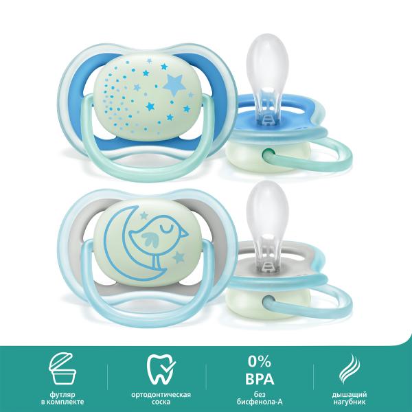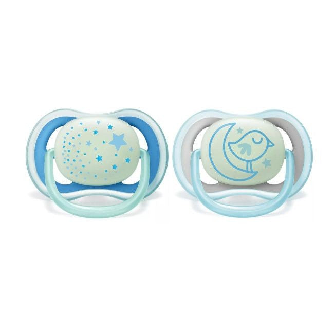 • Philips Avent Ultra Air Nighttime Neutral Pacifier 6-18m Boy (Blue/Light Blue x 2 pcs) SCF376/21