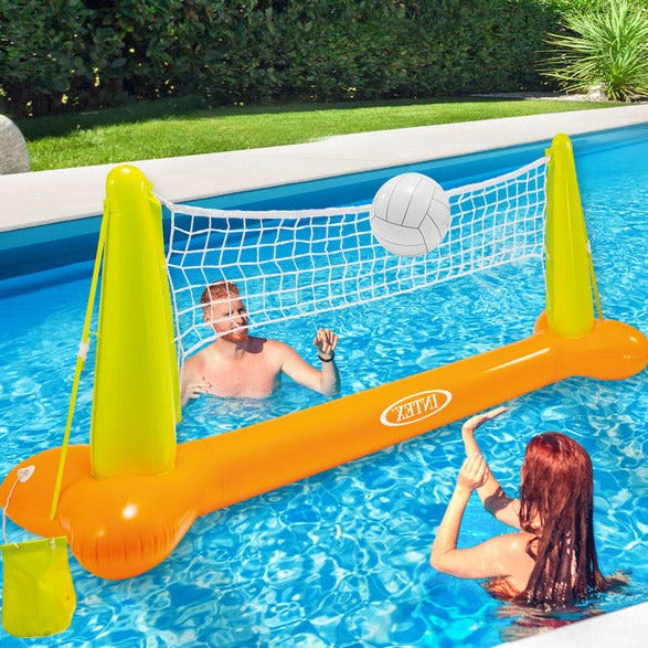 Grab your friends for hours of fun this summer with the Intex Pool Volleyball Game! This game comes complete with an inflatable volleyball and net and the pole bases are designed to add anchor weights if desired. This super fun game will make your pool the place to be this summer!
