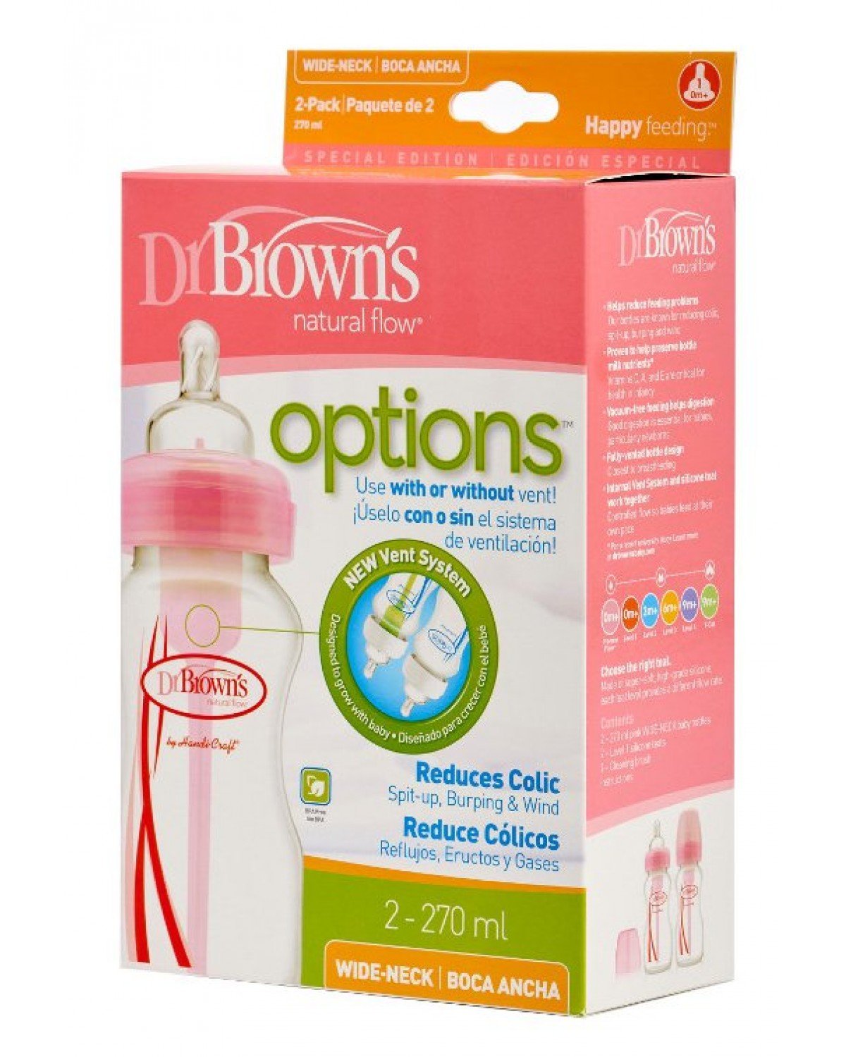 WB92305-ESX, 270 ml Wide-Neck Options Bottle, Pink 2-Pack